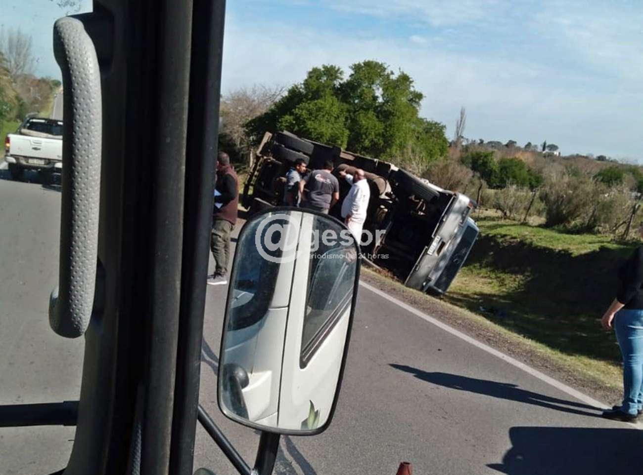Vuelco de camión de abasto de carnes en camino en de Los Argentinos