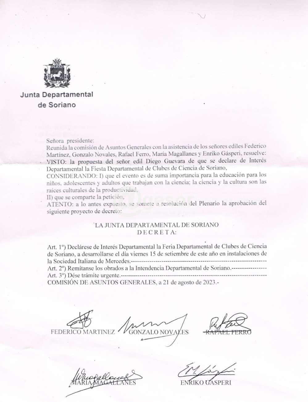 Recientemente la Junta Departamental de Soriano declaró esta actividad de Interés Departamental, un respaldo para este trabajo que busca fomentar la investigación y el desarrollo del conocimiento en niños y adolescentes.