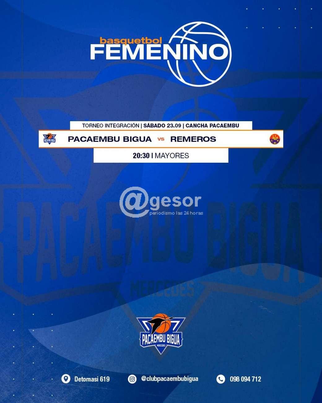 El cierre de la actividad de este sábado será partido entre Pacaembú Biguá y Remeros Mercedes en mayores desde las 20.30 horas por Torneo Integración