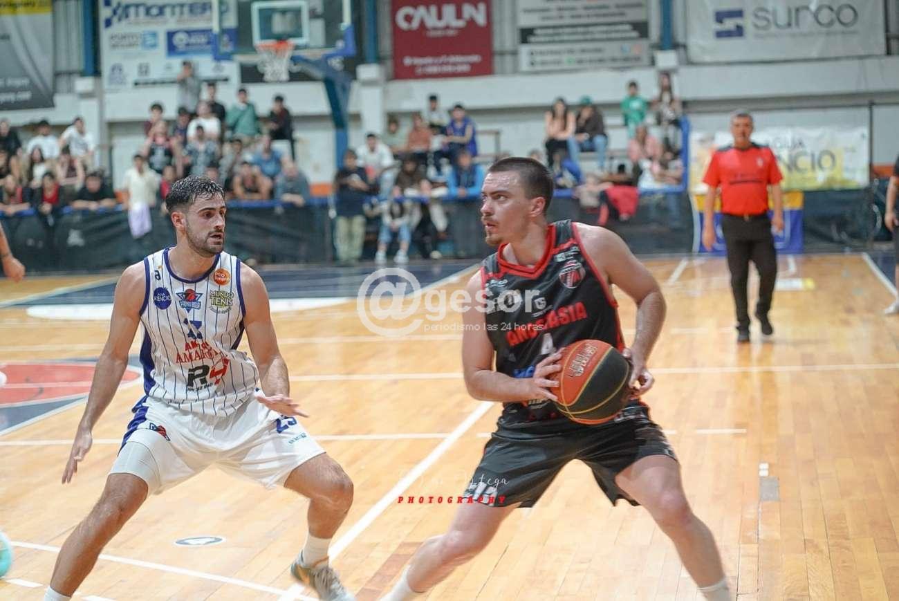 En el primer cuarto Pacaembú sacó distancia 15-21 y la reafirmó en el segundo 19-22, para irse al descanso en el primero tiempo 34-43, lo que permitió manejar el juego con tranquilidad, ante un rival que siempre dio lucha fiel a su estilo de no dar por perdido nunca un partido, teniendo como principal abanderado a Gallo, acompañado por Barriola y Garbarino, mientras que por el lado del "Paca" nuevamente Felipe García volvió a mostrar que está en un alto nivel, algo de Dotti junto con Macanskas y Espinosa.