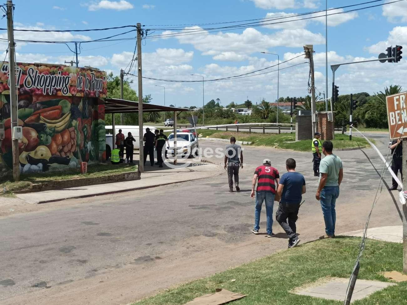 En las primeras horas de la tarde ocurrió un hecho de sangre en la zona de Hors casi Ruta 2, donde la Policía toma conocimiento de la presencia de un masculino desacatado, violento, con un arma blanca, habiendo generado incidente con su padre de 71 años y en el momento que se hace presente delegación policial, el funcionario intenta disuadirlo pero en lugar de apaciguarse, ataca al policía con el arma blanca, lo persigue y el policía al verse atacado, perseguido, retrocede, y con los antecedentes de esta persona, decide efectuarle un par de disparos, que finalmente terminan siendo mortales..