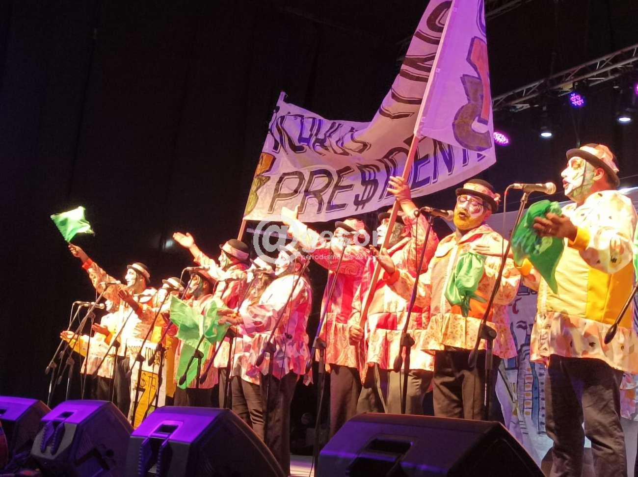 Con su tradicional coro potente, cantó y cantó esta vez, el espectáculo tuvo continuidad, es de las murgueras que tiene entre sus integrantes esas voces murgueras que se extrañan, con interpretaciones excelentes tanto masculinas como femeninas, nuevamente el "Gordo" Rovetta deja el alma en su hilo conductor, en especial cuando el personaje de Ricardo Tondo Presidente, volviendo a la murga que lo vio nacer.