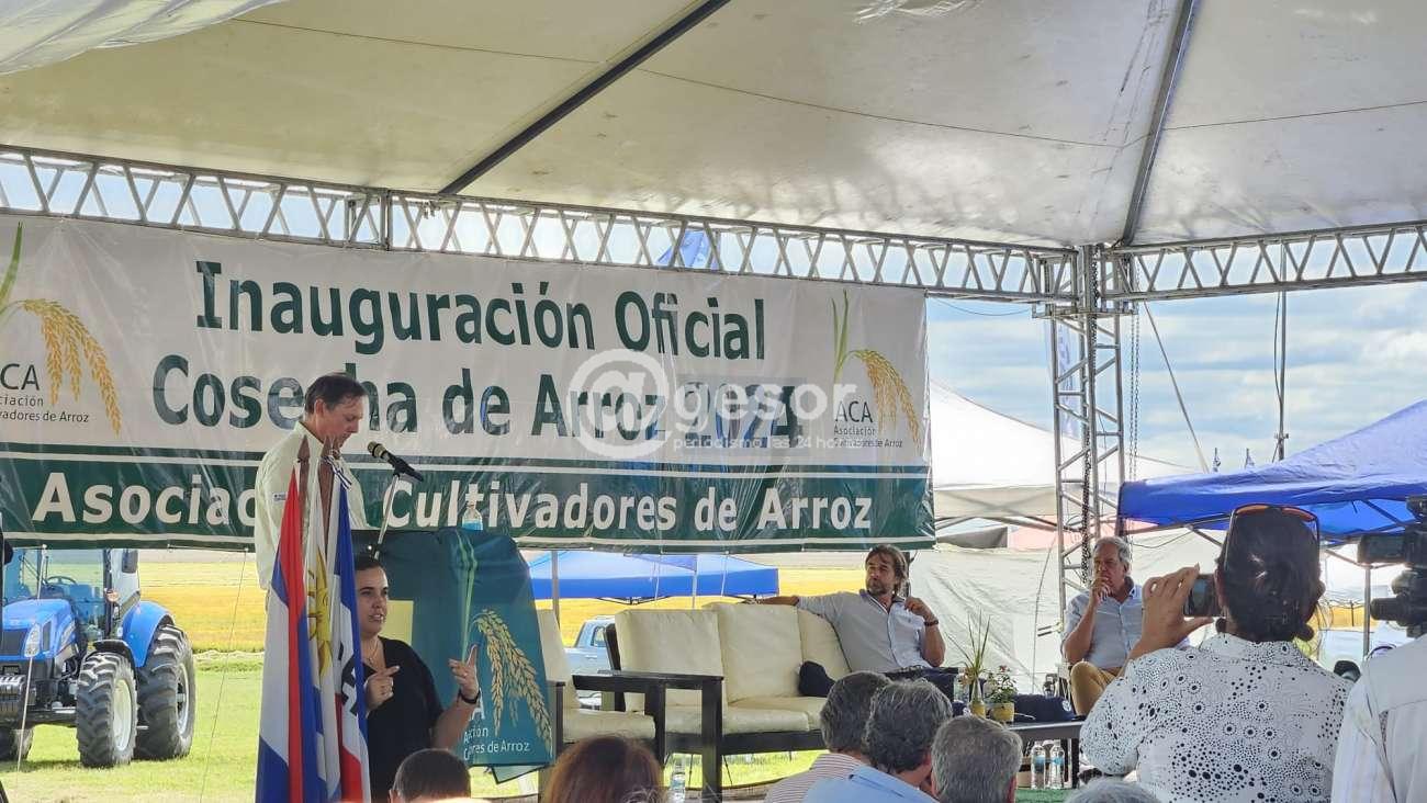 El Intendente de Soriano, Guillermo Besozzi y el Alcalde de Dolores, Joaquín Gómez, participaron de la inauguración de la cosecha de arroz 2024, en pueblo Barro, Tacuarembó. Este evento contó organizado por la Asociación de Cultivadores de Arroz (ACA), contó con la presencia del presidente de la República, Luis Lacalle Pou, el Ministro de Ganaderìa, Fernado Matos, y varios represententes políticos y directores de entes autónomos-