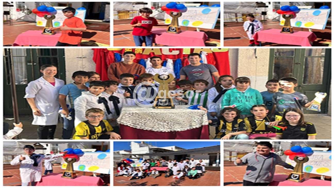 Niños y niñas de Escuelas 4 y 104 disfrutando de la copa de campeones y de sus ídolos
