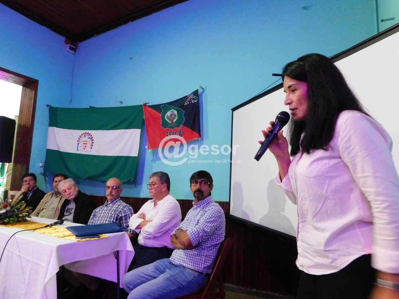 Comenzando la parte oratoria el Presidente del sindicato Mario Gastón Vera, señaló "muchas gracias por acompañarnos, la verdad que sentimos una gran emoción poder ver esta sala llena y sigue entrando gente y hoy se nos viene en el recuerdo mucha gente que pasó, muchos viejos que nos enseñaron, no queremos nombrar a nadie porque podemos olvidar a alguien y no es bueno para la institución nuestra.
