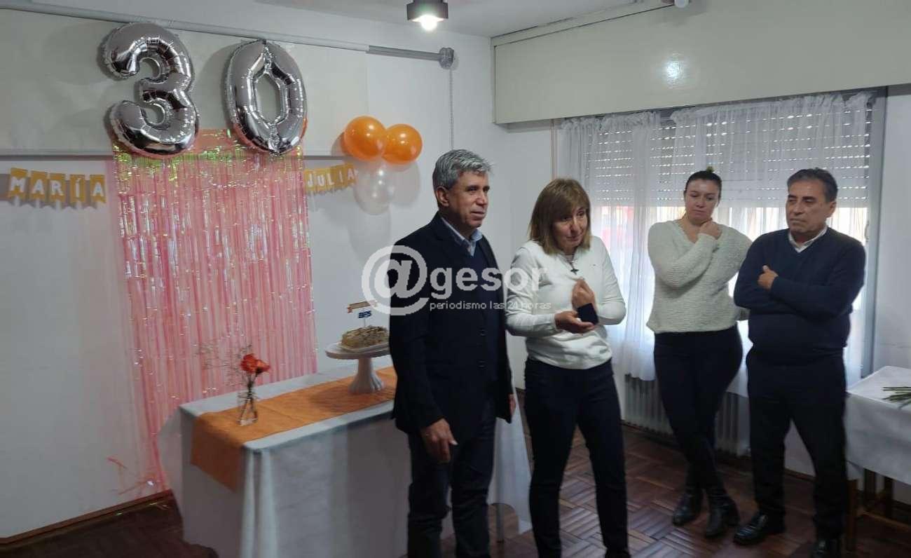 En la actividad cumplida en la sede de Mercedes una de las homenajeadas por María Julia Gavarone, quien cumplió 30 años de trabajo en BPS.