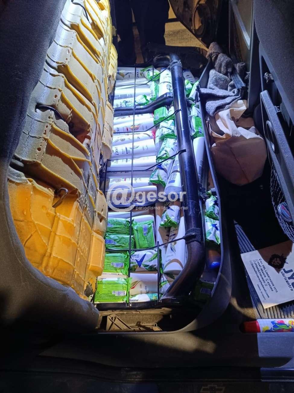 Al realizar el control de rutina, los funcionarios encontraron prendas de vestir, cosméticos, productos de limpieza, artículos de tocador, etc, escondidos en diversas zonas del automóvil, matriculado en Argentina.