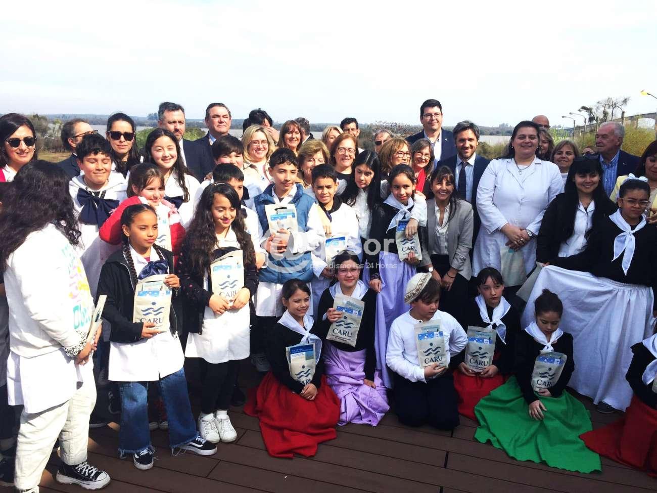 La ceremonia protocolar se desarrolló en la sede de la propia CARU, en la ciudad de Paysandú, contando con la presencia del Presidente de dicho organismo binacional, Mario Ayala Barrios, el Vicepresidente Miguel Feris, los delegados Esc. María Eugenia Almirón, el Ing. Roberto Pérez Rodino, por la delegación Argentina, Nicolás Domingo, mientras que por ANEP, los hicieron su Presidenta Virginia Cáceres Batalla, la Directora General de Educ. Inicial Olga de las Heras, y Héctor E. Goñi Director de Relaciones Internacionales y Cooperación en ANEP-Codicen, y la Jefa de Ambiente de CARU, Lic. Gabriela Sena, la Intendente de Río Negro Griselda Crevoisier, autoridades regionales, legisladores nacionales, y departamentales, y alumnos de las escuelas 13 y 113.
