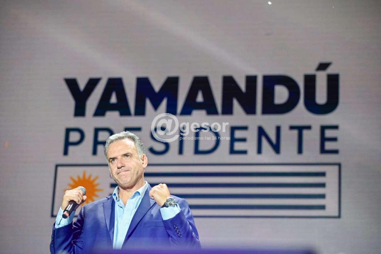 Yamandú Orsi, inició su discurso frente a los simpatizantes frenteamplistas citando un verso de Alfredo Zitarrosa: “No hay cosa más sin apuro/ Que un pueblo haciendo la historia”. Al saber que el Frente Amplio pasó a la segunda vuelta electoral Yamandú Orsi enfocó su discurso hacia los símbolos patrios y lo que representan y una visión política “en donde nadie es más que nadie”.