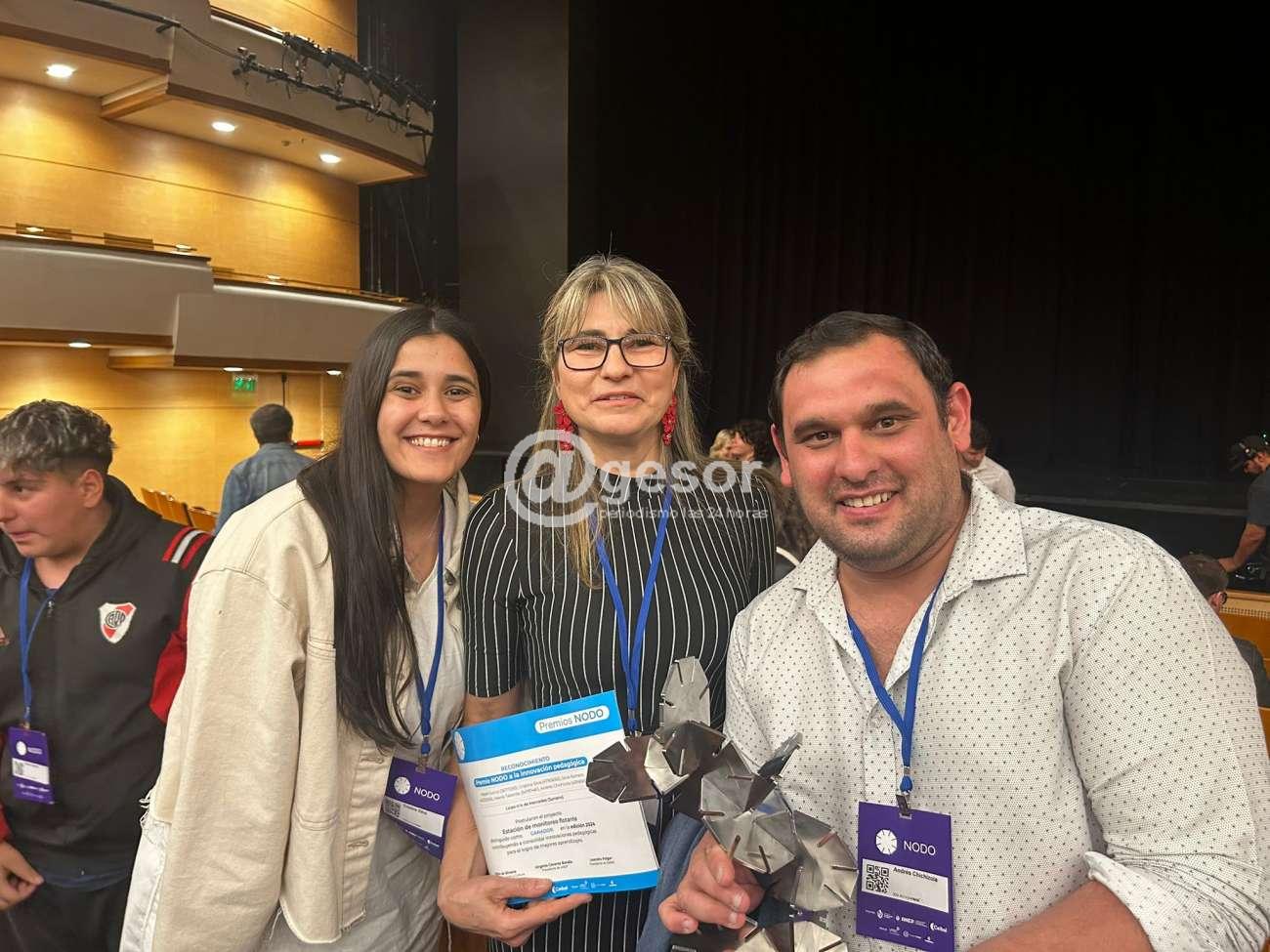 El Director de Educación del MEC Gonzalo Baroni y la Presidenta de la ANEP Virginia Cáceres fueron quienes dieron a conocer el Primer premio NODO a la Innovación Pedagógica, que le correspondió al Liceo 4 de Mercedes, cuya delegación subió a recibir el premio y los docentes estarán viajando a Finlandia para realizar formación en innovación educativa.