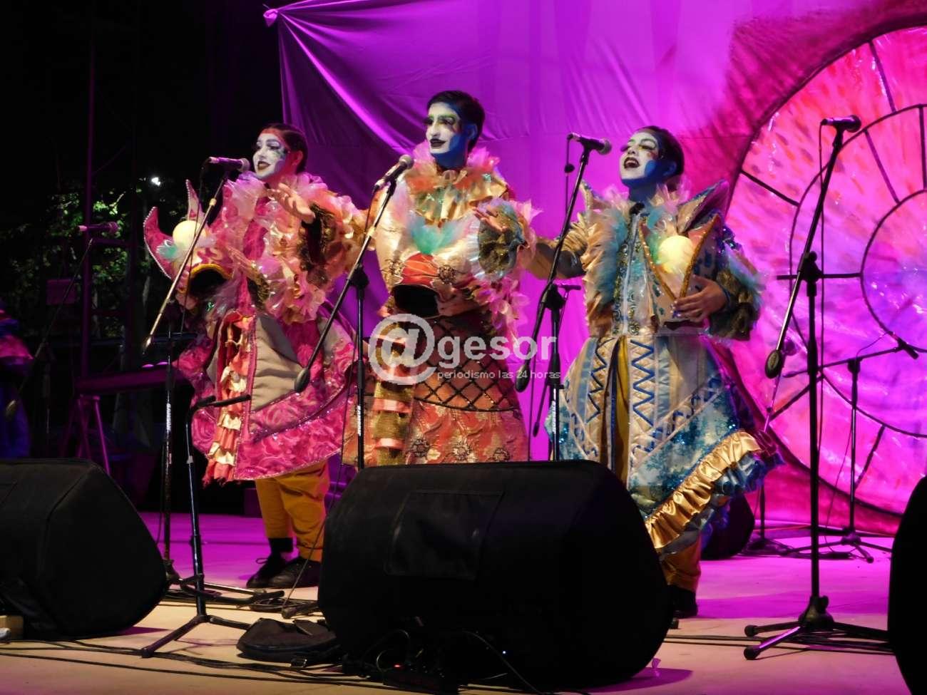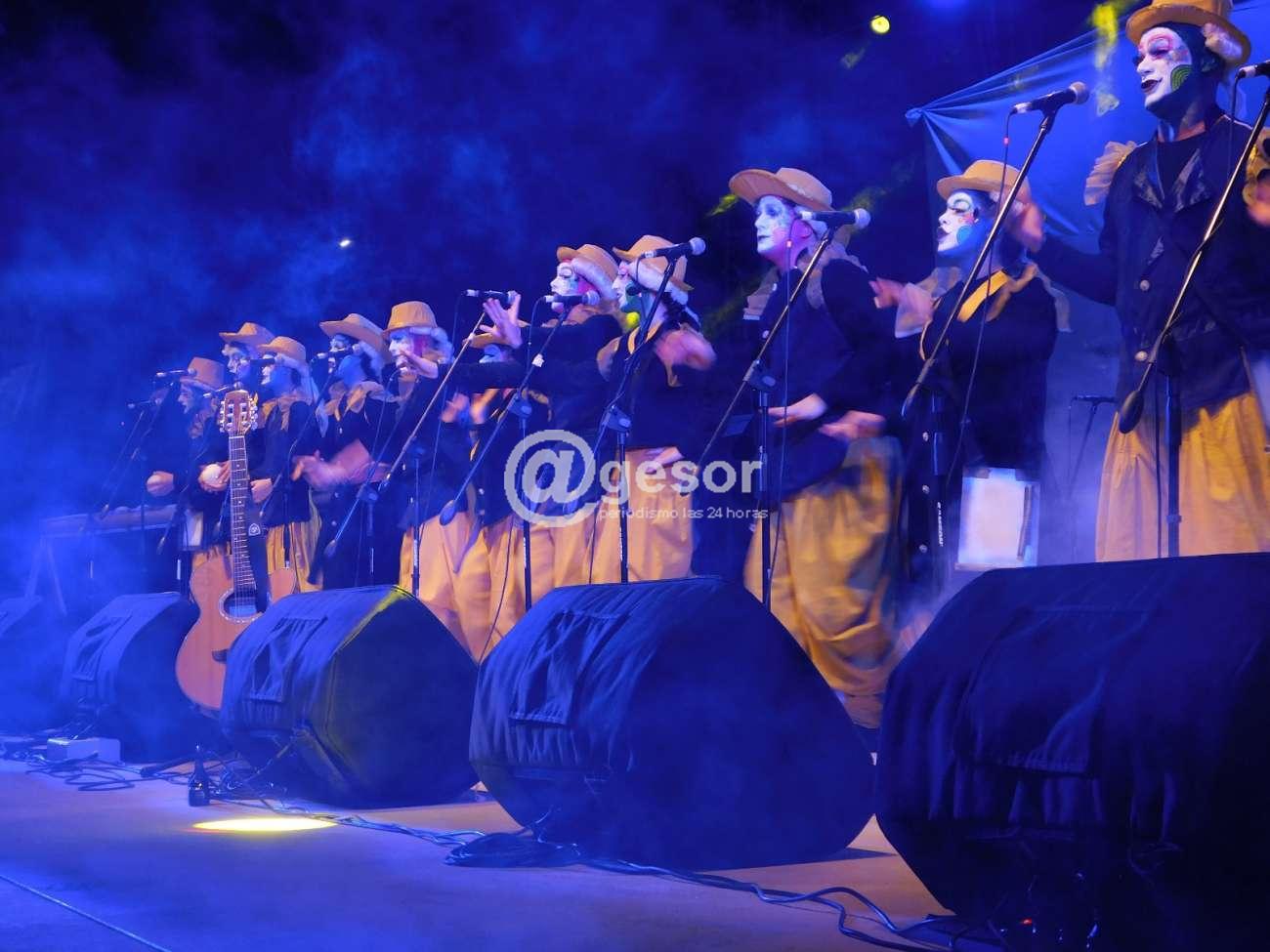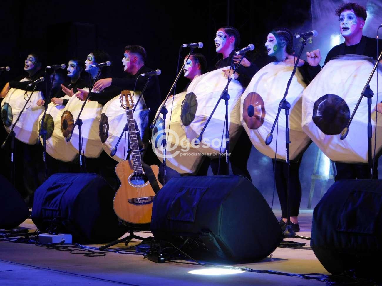 Durante la mayor parte de su actuación la murga en general cantó lejos de los micrófonos, no sabemos si fue una estrategia o un error, a los efectos de lo que se percibió desde el público, el coro se oyó por momento armonioso, en algunas ocasiones aparecieron desafinaciones, y a diferencia de otros estilos que se dan por esta región, no es una murga que cante potente, sino que las voces femeninas se hacen sentir.