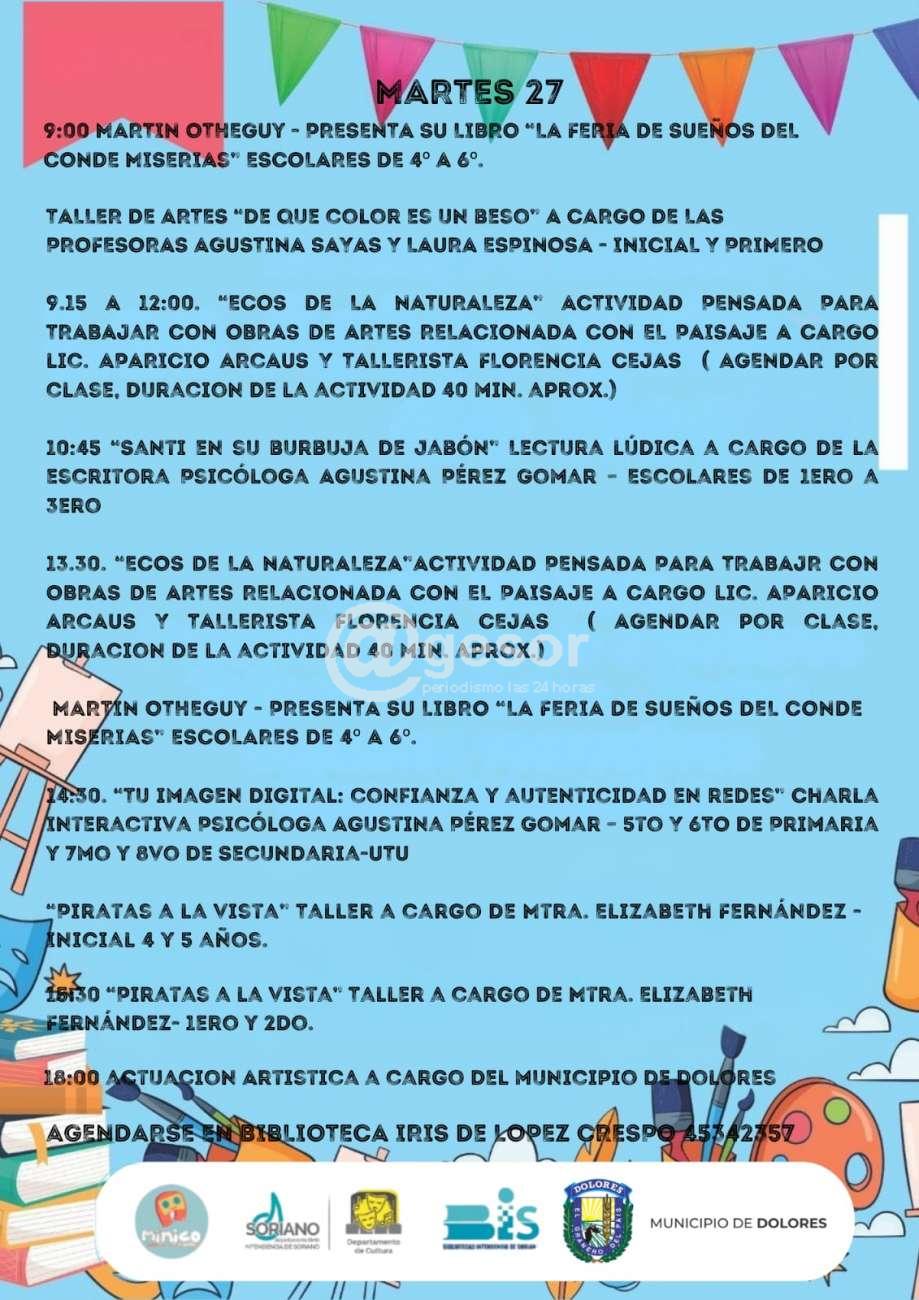 Lunes 26 y martes 27 de mayo Centro Cultural Nacional Dolores Biblioteca Iris de López Crespo