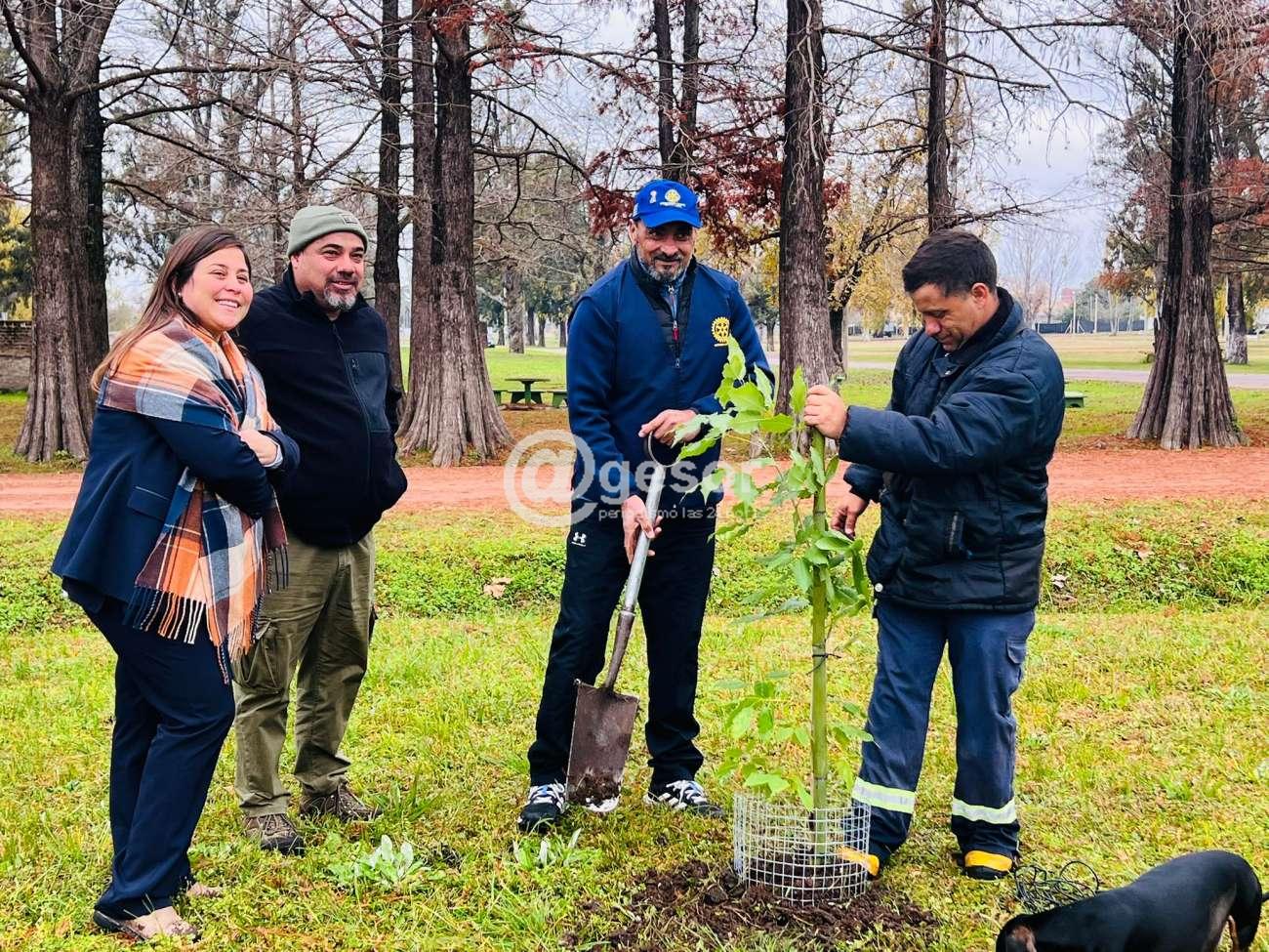 En el marco del mes del medio ambiente, la Intendencia de Soriano junto al Club Rotario Mercedes Oeste, realizaron una plantación de árboles en un sector del parque "Guernica".