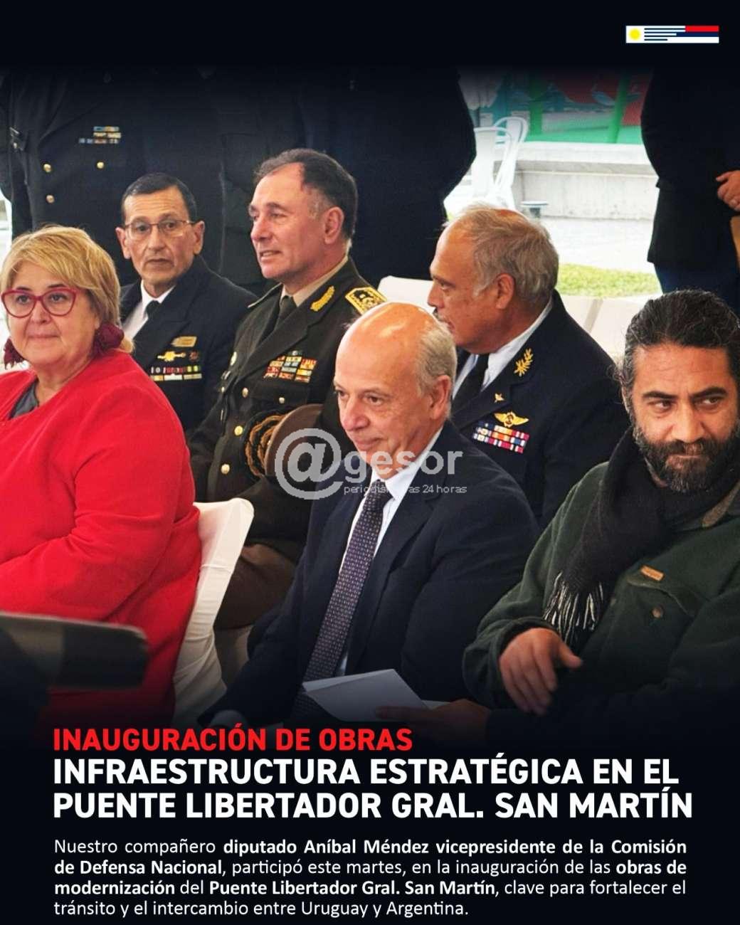 Este martes, nuestro compañero diputado Aníbal Méndez, en su calidad de vicepresidente de la Comisión de Defensa Nacional, participó en la inauguración oficial de las obras de modernización y reacondicionamiento en la cabecera oriental del puente Libertador General San Martín, que une Gualeguaychú (Argentina) con Fray Bentos (Uruguay).