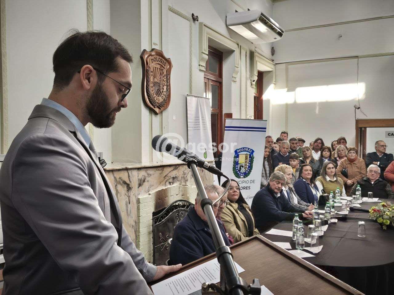 Más adelante agregó “hoy me toca volver, pero no puedo no agradecer al Consejo municipal que me acompañó en los momentos más duros, creo que los momentos más duros de mi vida, que fue el asumir en 2021 tan de repente, y ahí lo veo a Luis, al Canario que también estuvo Teresa Villegas, Walter Saso, a Natalia Sosa. No me puedo olvidar de Celita Morales que no pudo estar, Eduardo Poloni también que hoy es director del Hospital, y vaya si es un ejemplo de democracia, vaya si es un ejemplo de que se puede trabajar en conjunto más allá de la ideología. El consejo anterior no me deja mentir. Yo creo que votamos más del 90% de las cosas que se votó, se votó por unanimidad, pero eso fue a base de mucho diálogo, fue a base de dejar primero la ciudad y después cualquier partido político y creo que esa va a seguir siendo la forma y estoy seguro que con el nuevo Consejo va a ser así. Ya lo hablé con Natalia, lo hablé con Yanela, con Viviana, con Leopoldo y creo que todos tenemos ese mismo sentimiento que tienen los doloreños, que a veces se pasa un poco de mambo, pero es un sentimiento locatario, que a veces excede los límites. Pero bueno pero es así, y eso es lo que creo que los consejos de Dolores tienen muy fuerte, que es primero poner la ciudad. Nos pasó en el gobierno anterior nacional, que era de mi partido, en un momento que había un problema de salud y nosotros algunos concejales salimos a la marcha a reclamar y después se solucionó gracias al gobierno de Luis, pero salimos a la marcha y salimos a pedirlo y es así. Y lo mismo con el intendente, que la verdad que en la gestión pasada tuvimos un gran relacionamiento y creo que va a seguir siendo así. Espero que nada ni nadie pueda cambiar la forma de ser del intendente con el interior del departamento. Quiero que siga esa forma de gobernar, quiero que sigamos siendo escuchados de la misma manera, que podamos ir trabajando en conjunto con los directores, que vaya a haber nuevo la intendencia, que con los anteriores trabajamos en su gran mayoría muy bien y espero que así sea. Al alcalde saliente también, Adrián, que pudiste seguir con las obras que estábamos haciendo, también poniendo tu impronta, que era importante, pero también tomaste la responsabilidad y el compromiso de seguir las obras que veníamos haciendo, que creo que eso es muy importante también y habla mucho de vos. Porque a veces el gobernante que entra quiere cambiar todo y no, sin embargo pusiste tu impronta y al mismo tiempo pudiste seguir las obras que estábamos haciendo”.
