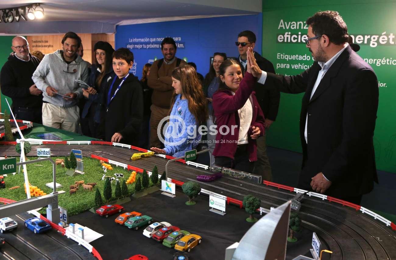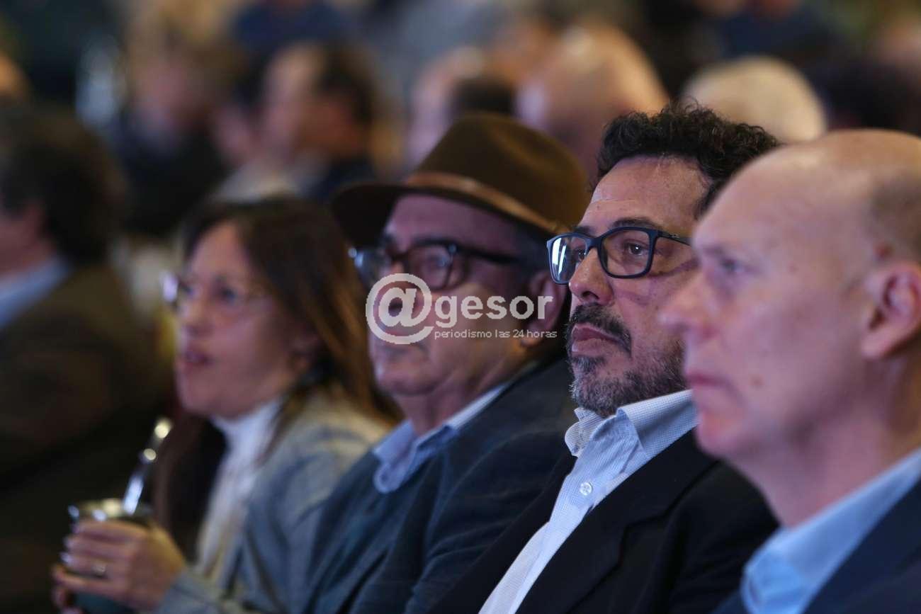 El ministro y el subsecretario de Ganadería, Agricultura y Pesca, Alfredo Fratti y Matías Carámbula, respectivamente; la ministra de Industria, Energía y Minería, Fernanda Cardona, y la presidenta de UTE, Andrea Cabrera, acompañaron a Sánchez en el evento organizado por Regadores Unidos del Uruguay.