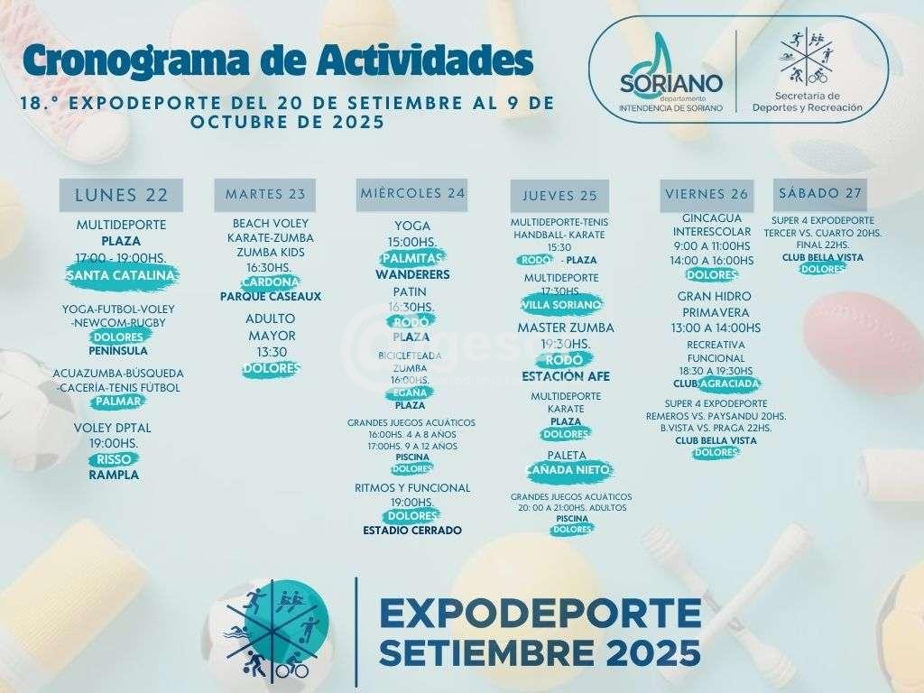 La 18ª Fiesta Nacional del Deporte y la Recreación - Expodeporte 2025 se inicia este sábado, y tendrá una gran agenda de actividades en Mercedes y en localidades del interior del departamento, hasta el 9 de octubre.