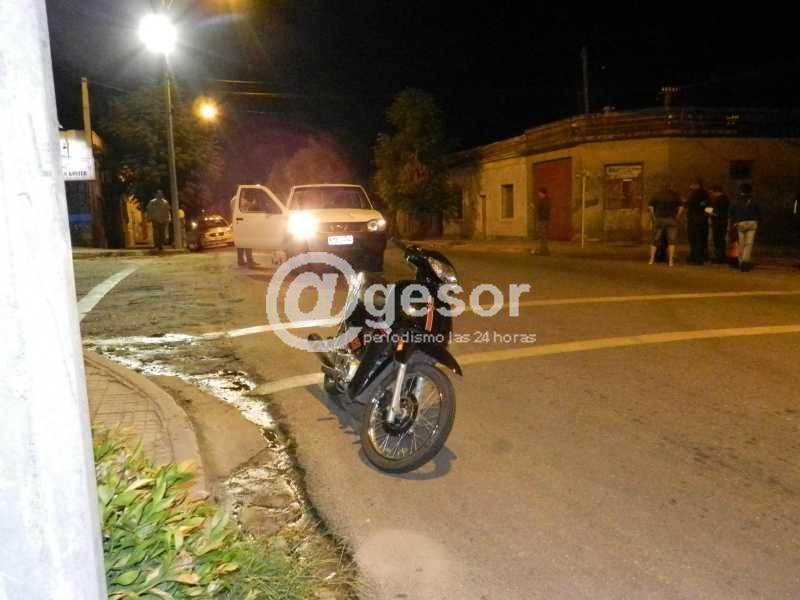 Próximo a la hora 4.00 de la madrugada de este sábado en la intersección de Avenida Fregeiro y Herrero y Espinosa de Mercedes entraron en colisión la camioneta Nissan KMB 1240 del Ministerio del Interior que utiliza la Dirección de Investigaciones, que era guiada por el funcionario policial Pedro Lapido, que circulaba por la primera de las arterias nombradas, y la moto Yumbo Max 50 KNA 611 conducida por la menor de iniciales A.B. que llevaba como acompñante a un joven y que transitaban por Herrero y Espinosa al Sur, los dos con casco. Se realizó espirometría a ambos conductores la que resultó negativa. Trabajó en el lugar Policía Técnica.