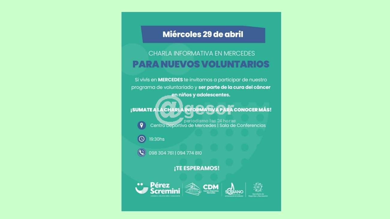 Se invita a los vecinos de Mercedes a participar en la charla informativa destinada a la incorporación de nuevos voluntarios al programa que trabaja en la cura del cáncer en...