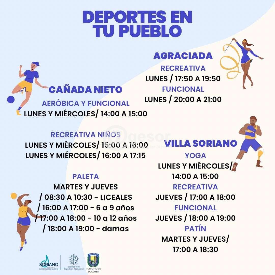 Desde el Municipio de Dolores se informa que en busca de mejorar el servicio que brindamos, les traemos más información sobre los deportes que te ofrecemos en conjunto con la Secretaría de Deportes y Recreación de la Intendencia de Soriano, y la Secretaría Nacional de Deportes.
