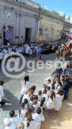 Tal como estaba previsto pasó por Mercedes el chasque ´100 años de la Escuela del Solar de Artigas en Paraguay´. Después de recorrer varias localidades del departamento el chasque llegó hasta Plaza Artigas para rendir homenaje al prócer, para posteriormente pasar por las Escuelas Nº 1 y 4 donde los niños entregaron sus mensajes.